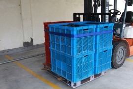 ● The binding strap is installed on the right side of the forklift guard rail frame (the right-hand side of the forklift driver).